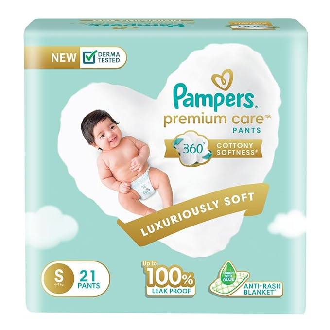 Pampers Premium Care Pant Style Baby Diapers, Small (S), 21 Count, All -in-1 Diapers with 360 Cottony Softness, 4-8 Kg Diapers